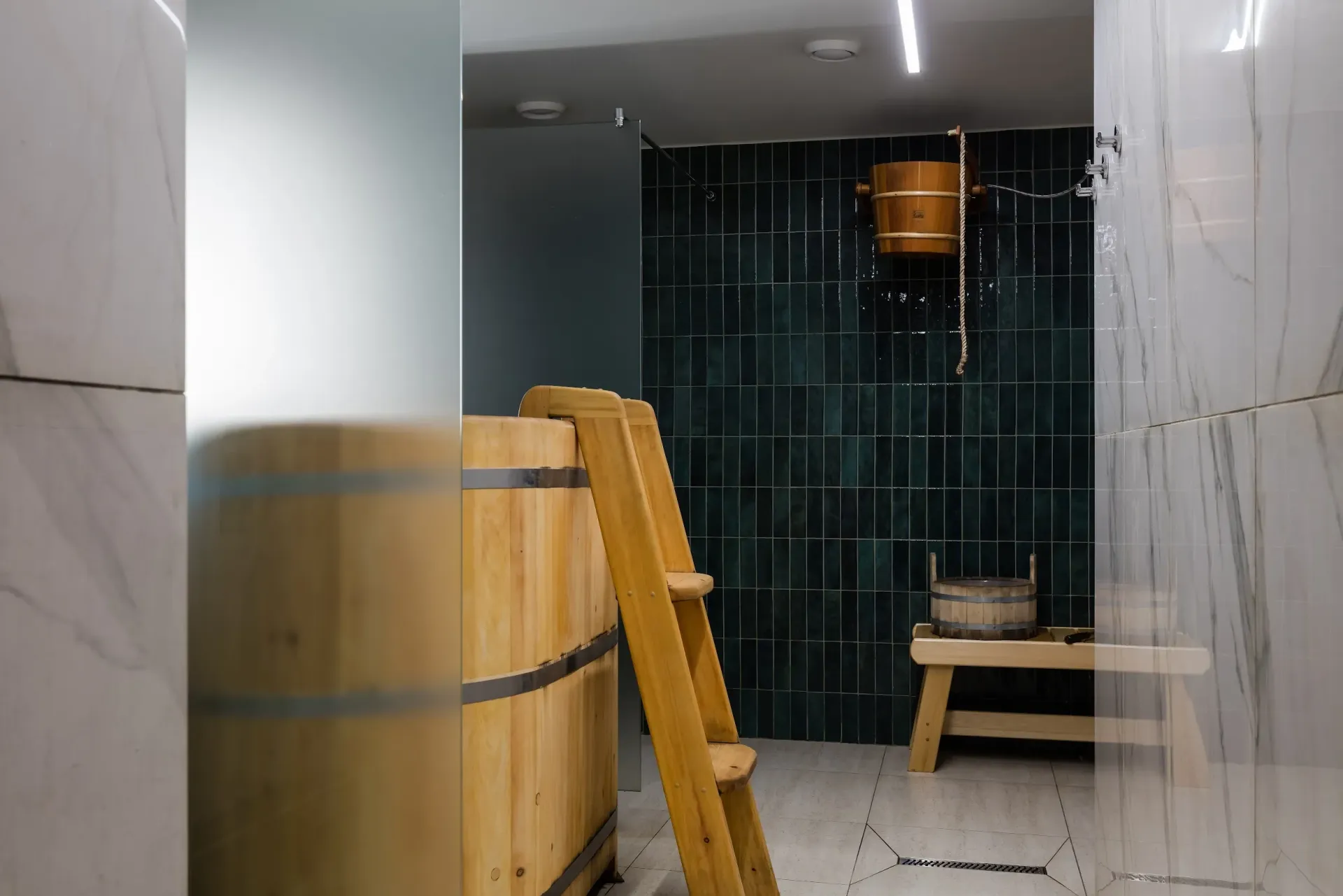 Для удобства гостей в стоимость посещения включены все необходимые принадлежности: банное полотенце, простынь, одноразовые тапочки, шапочка для душа, а также гигиенические средства — гель для душа и шампунь. Дополнительно доступна аренда халата.